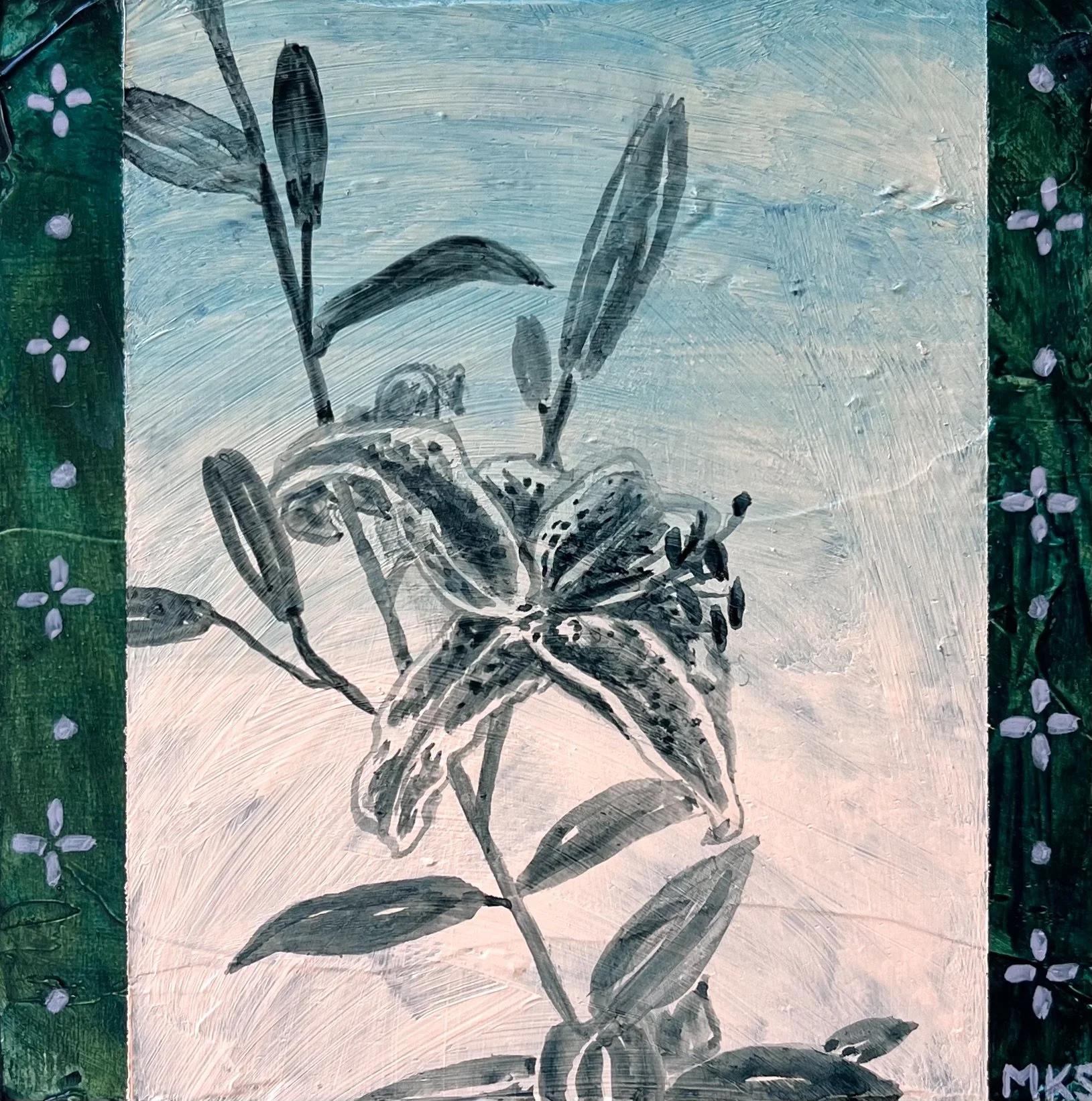 Tiger Lily. Acrylic on wood. 4”x4.”