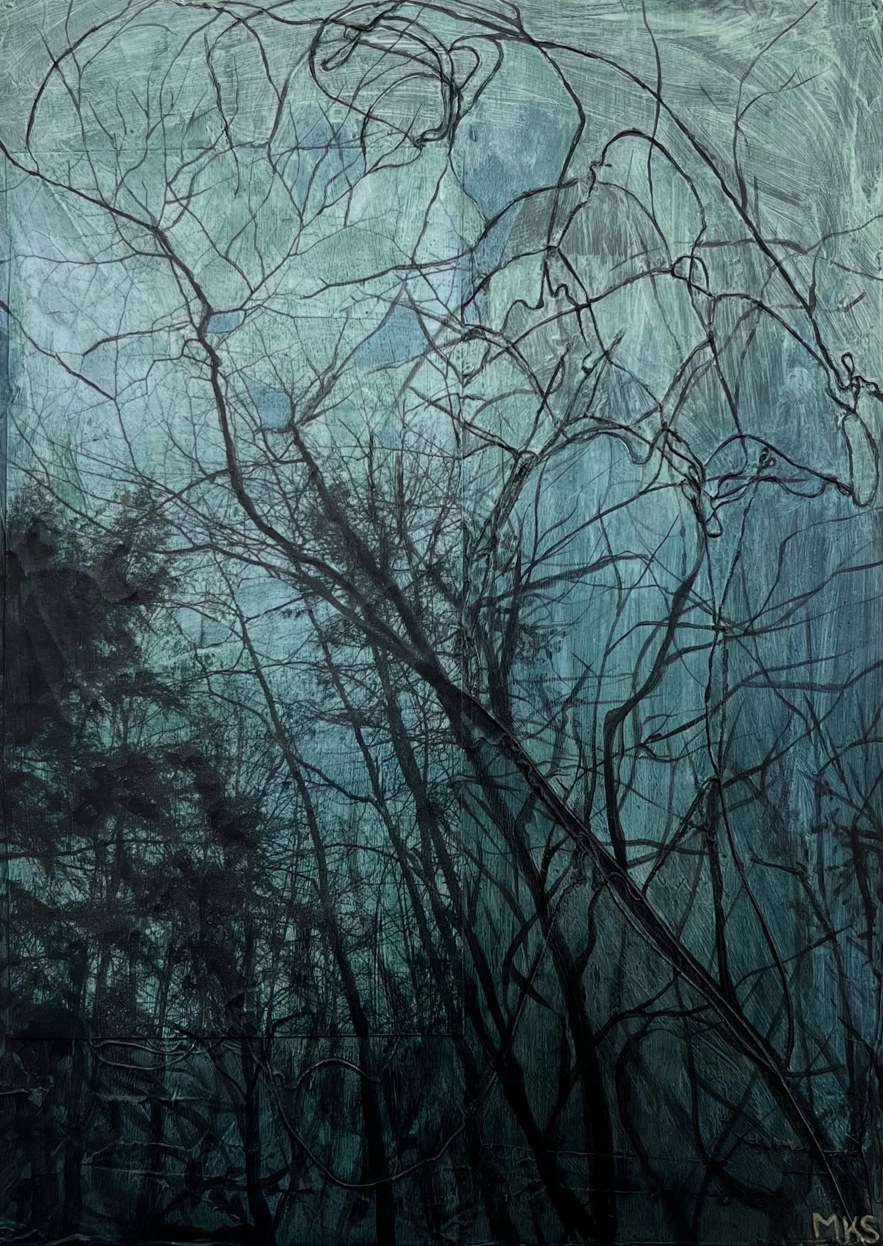 Haunts of Nature. Mixed media on canvas. 28”x48.”