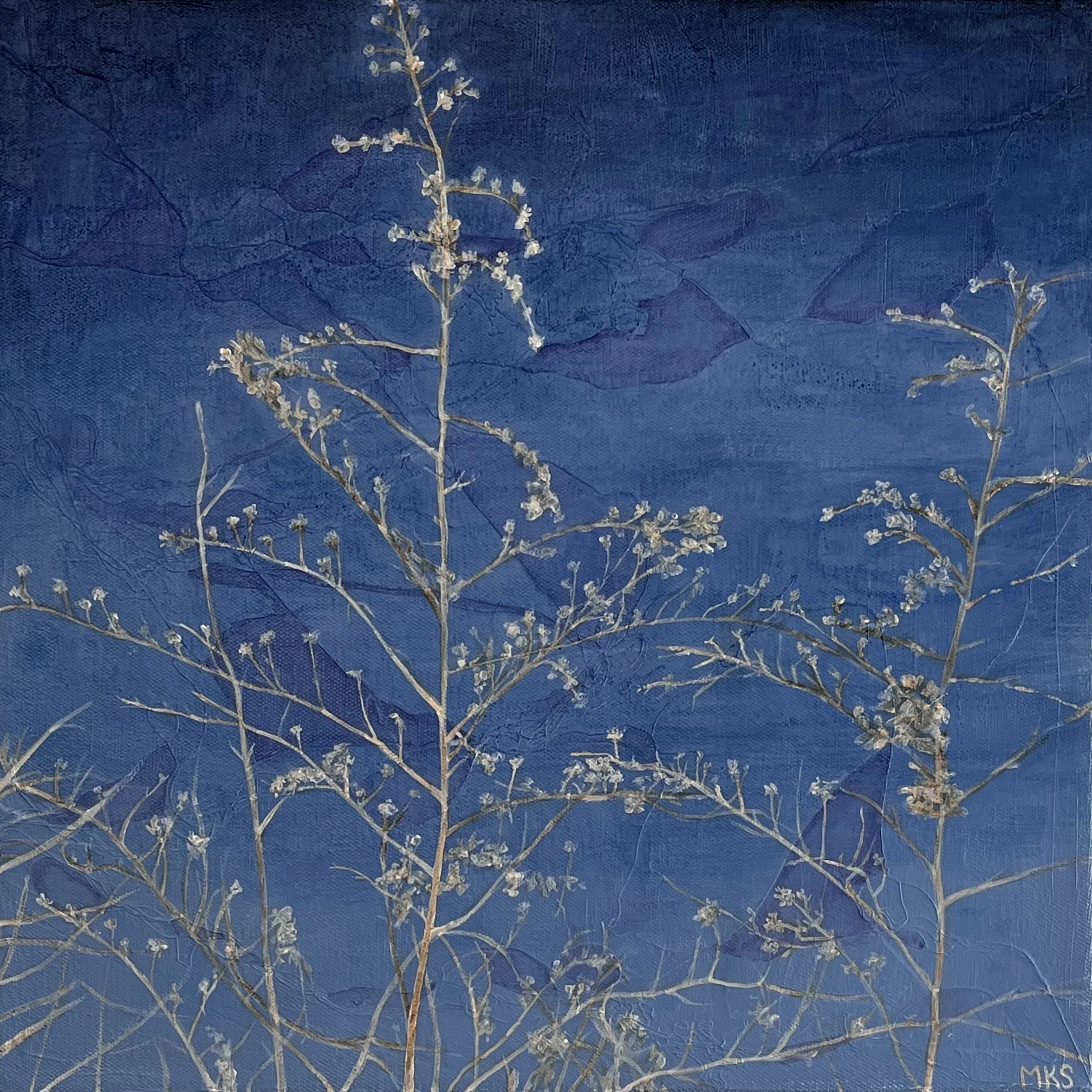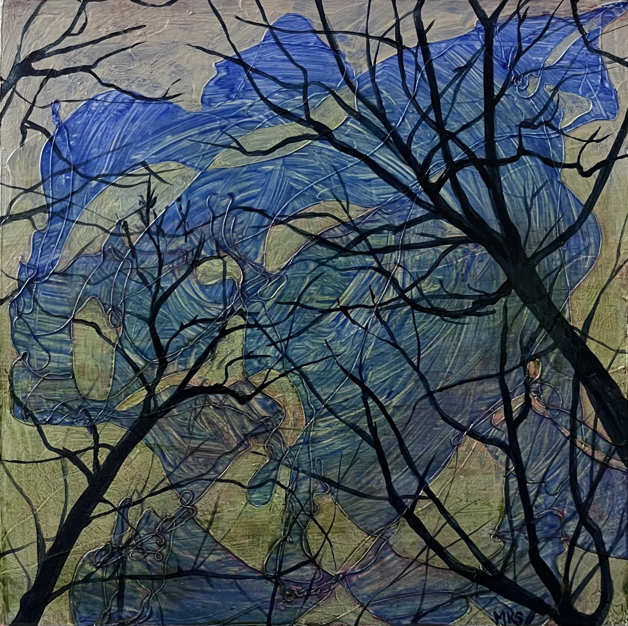 South Shore at Twilight. Mixed media on canvas. 14”x14.”